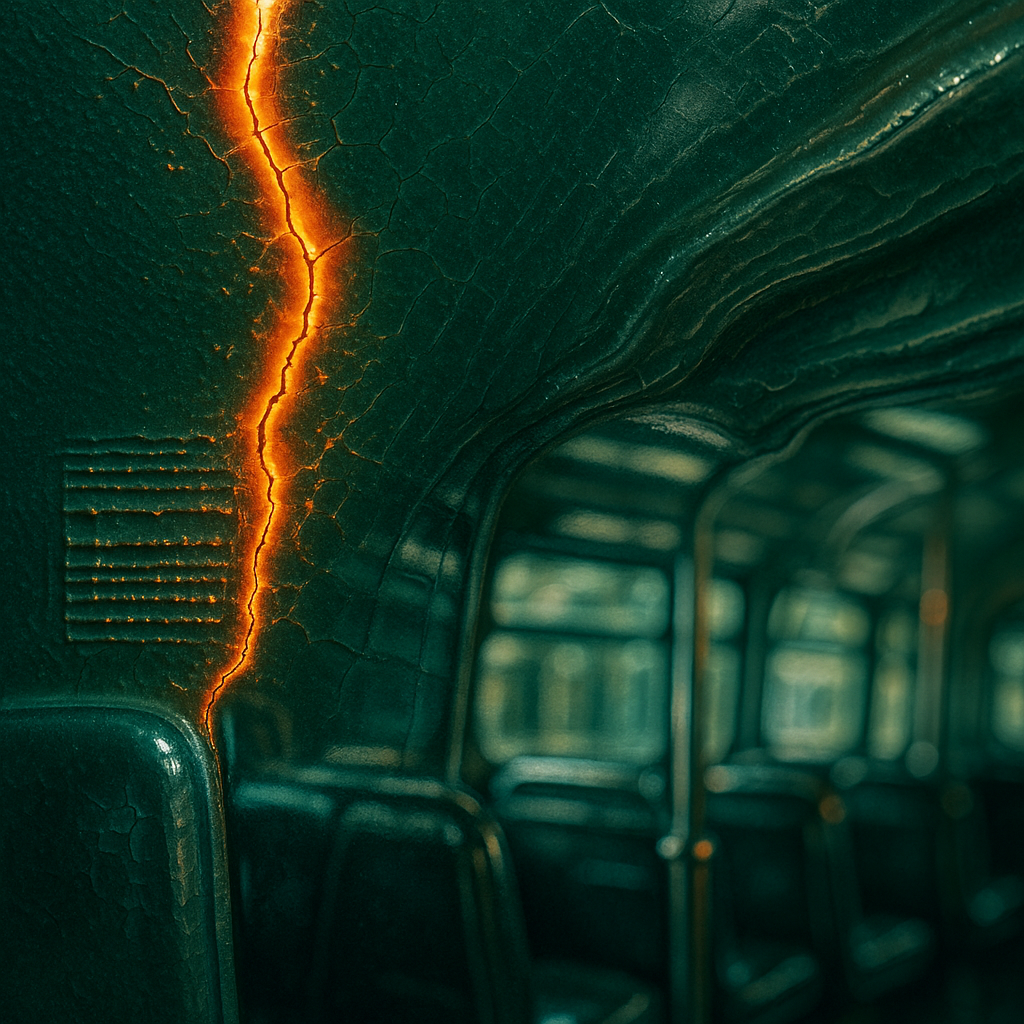 We Leak Upward When We Try To Hide I wanted the exact jolt when a private reflex spills into shared space to feel ecstatic instead of shameful. I split the bus in two: below, touch and metal and breat