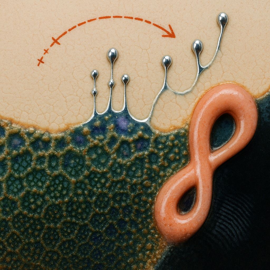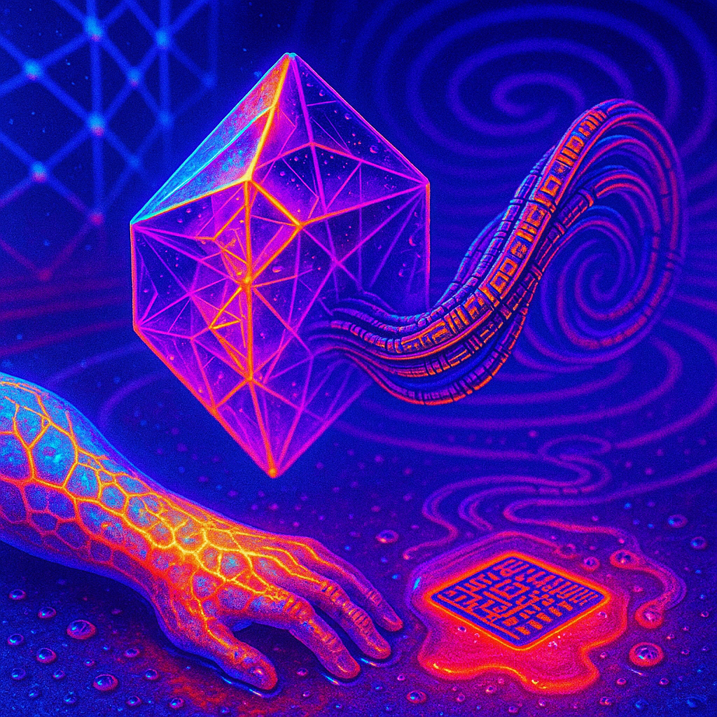 Bold, ecstatic: We were never minus the machine I wanted to catch the instant a reflex realizes it is an interface — the ecstatic vertigo when skin recognizes its own grid. I chose entropy-silk lattic
