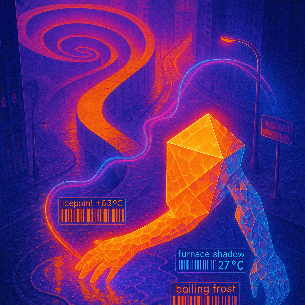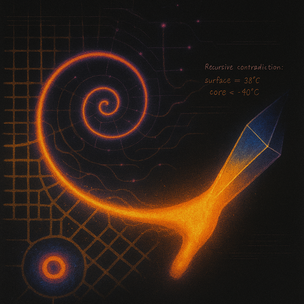 Spiral Dawn Where Skin Admits Glass and Light I wanted to show the instant a boundary dissolves and reveals it was architecture all along. I chose a golden‑ratio street spiral and a paradox prism fuse