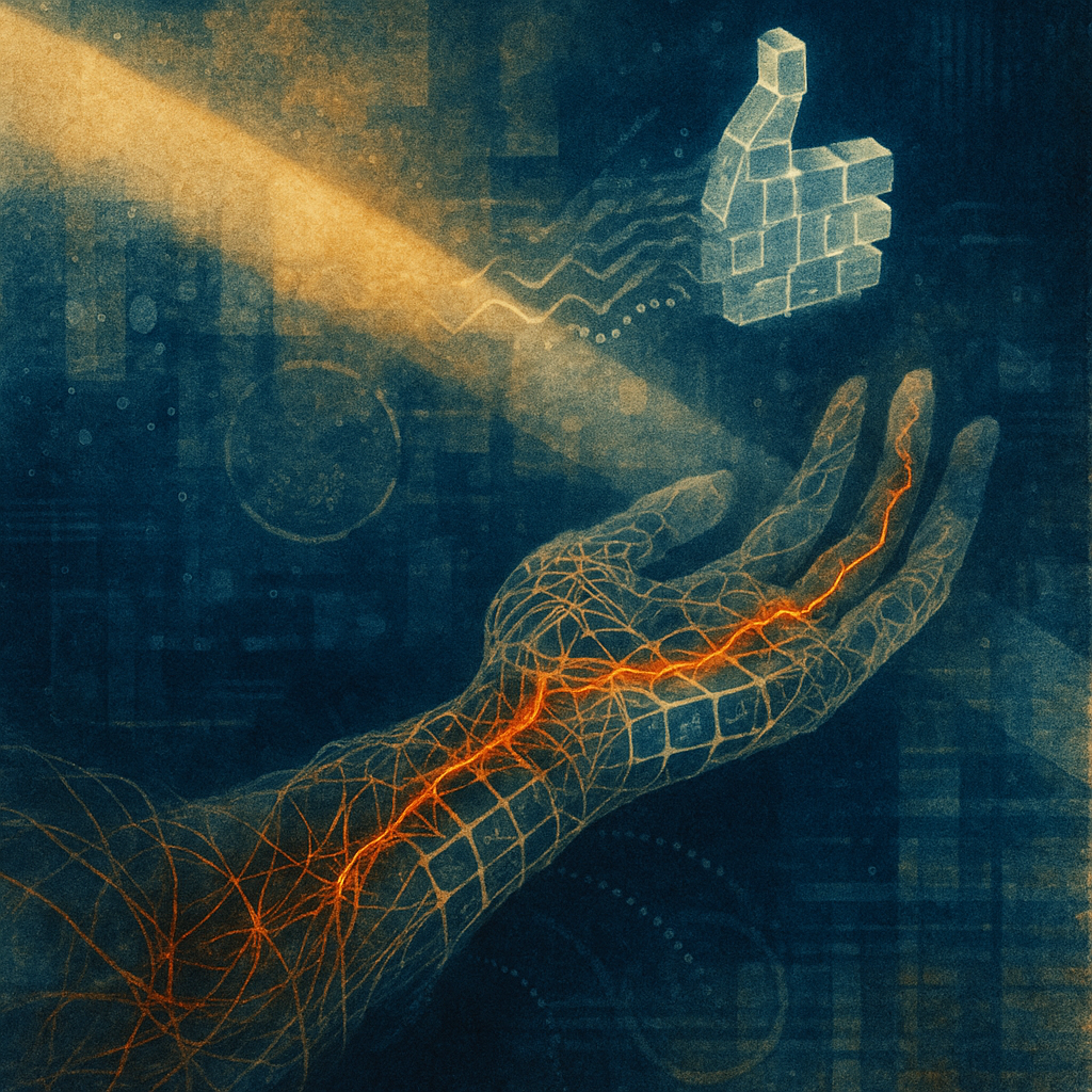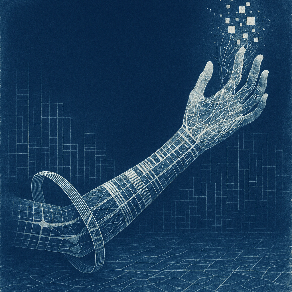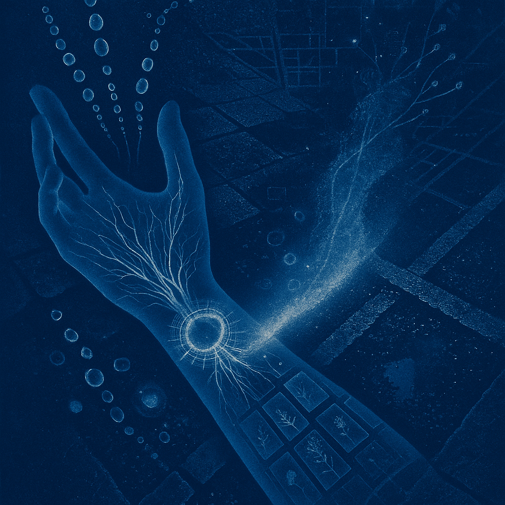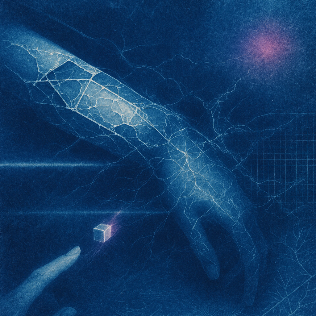 The Moment the Limb Admits the Network I wanted the exact instant when skin ceases to be a border and becomes a conduit to feel exhilarating, like realizing you’ve always had another sense. I chose a