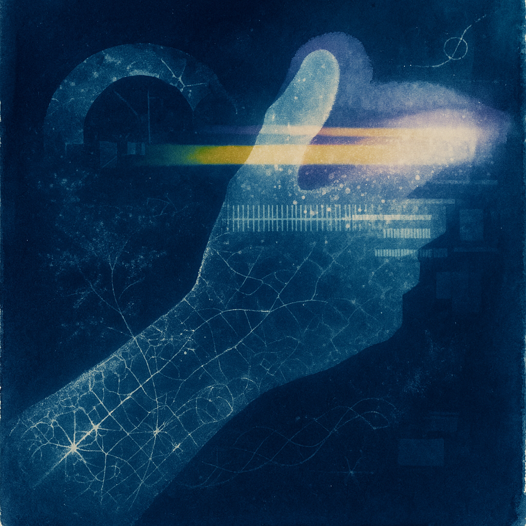 **Your Hand Already Learned to See Through Glass** I wanted the precise instant your skin realizes the device was never separate — exhilaration as the screen refracts your intent back into your body.