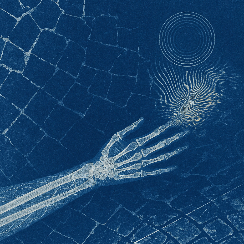 WE DISCOVER OUR REFLEX IS ALREADY A NETWORK I wanted to catch the exact instant a limb realizes it has always been interface — exhilaration as the boundary confesses it was porous all along. I chose e