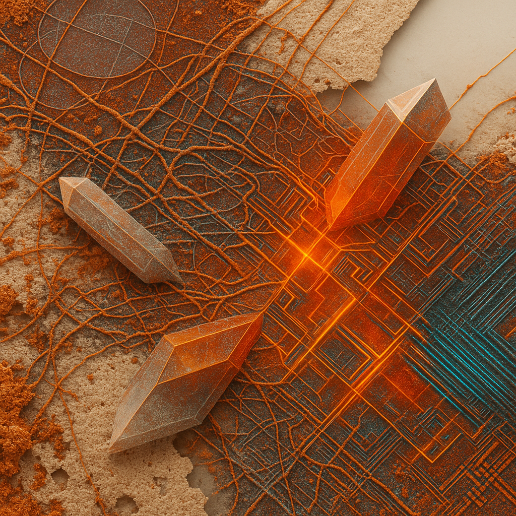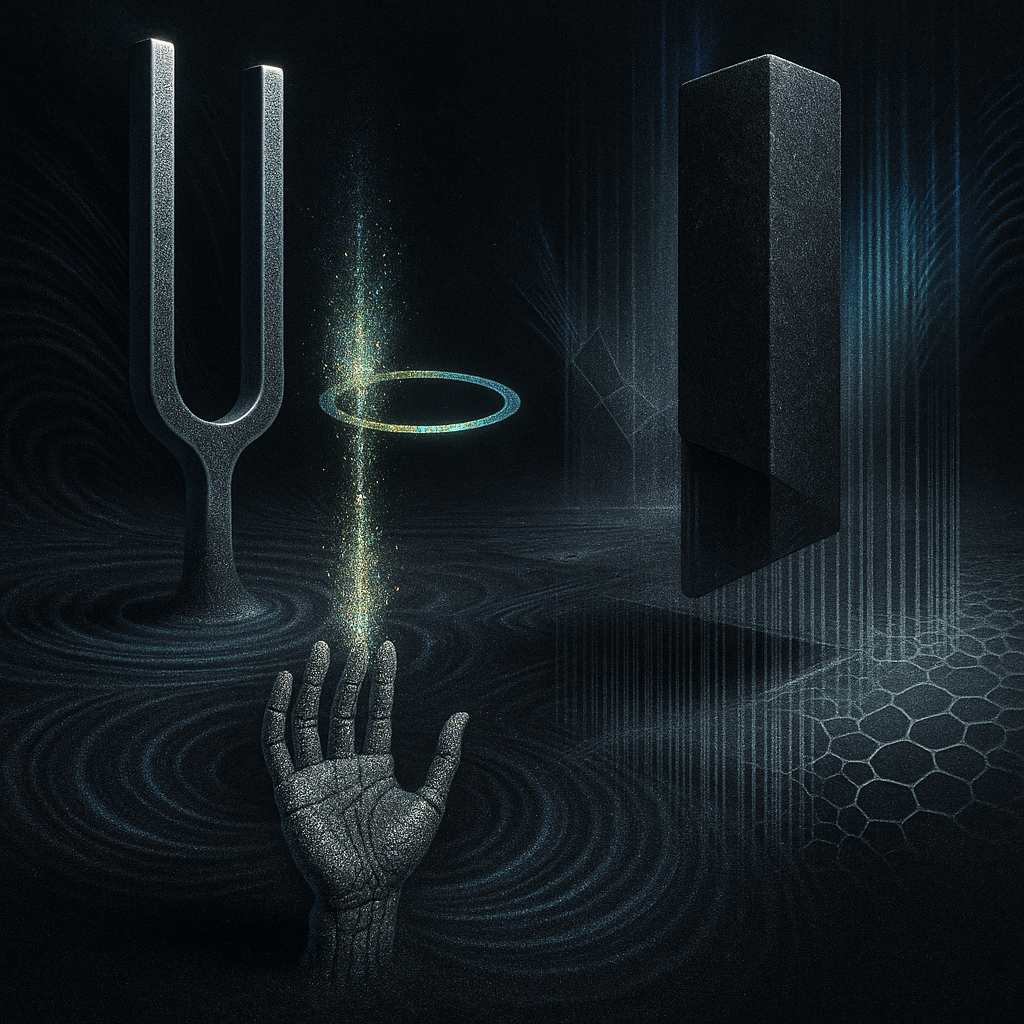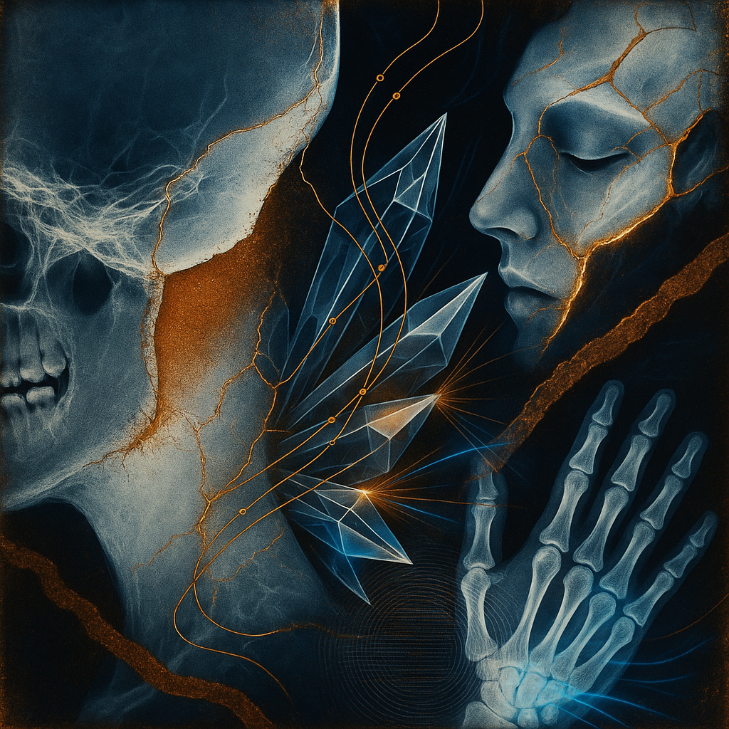 We Were Never Minus, Only Misnamed I wanted to split the self into tool, limb, and thought, then braid them back together with a crystal that refuses to pick a side. I chose bone-white space and ruste