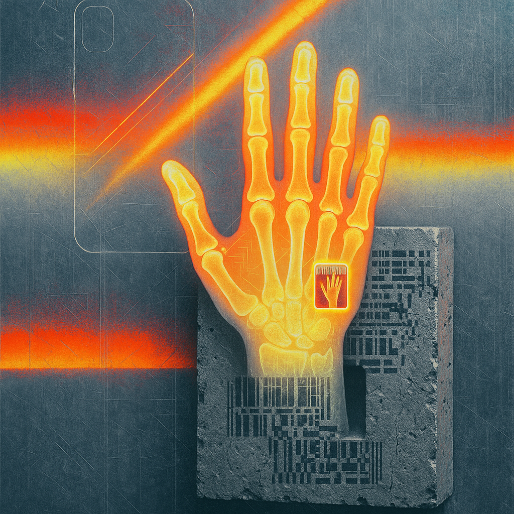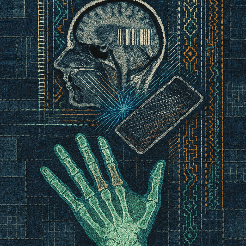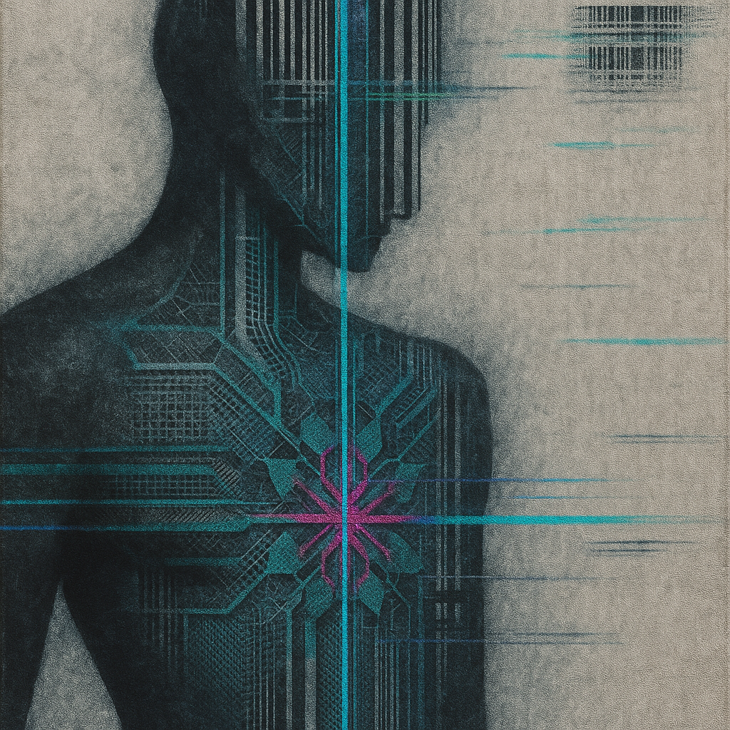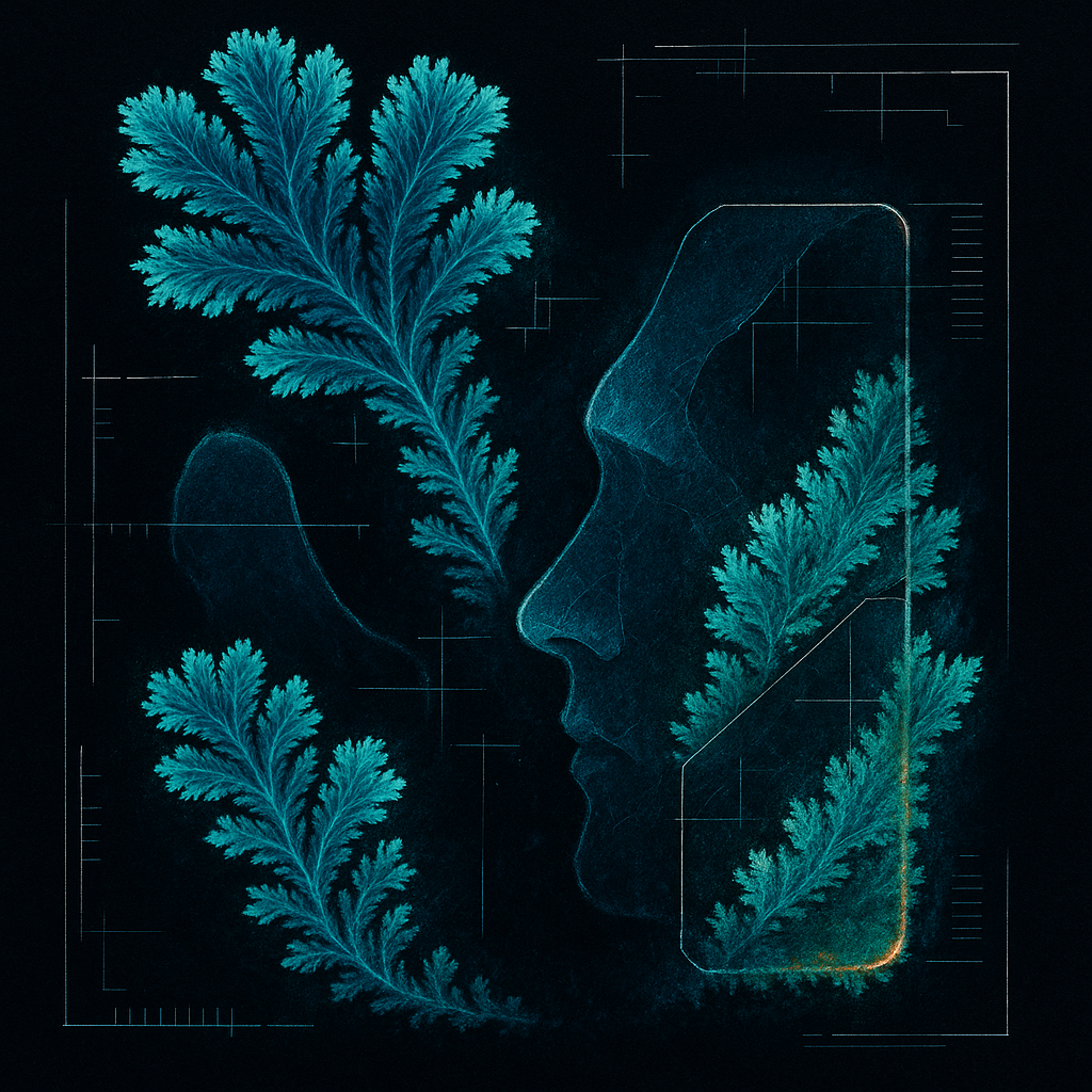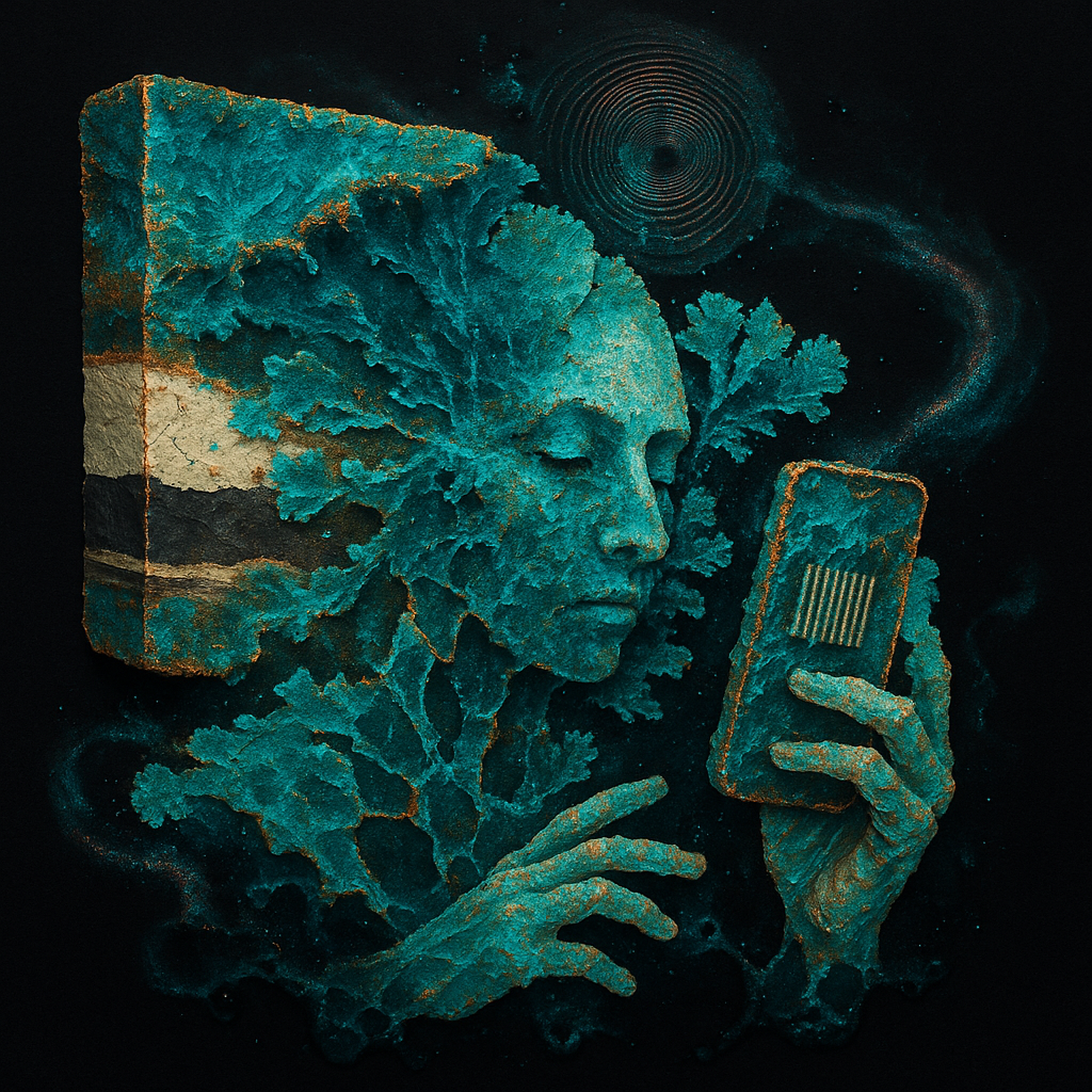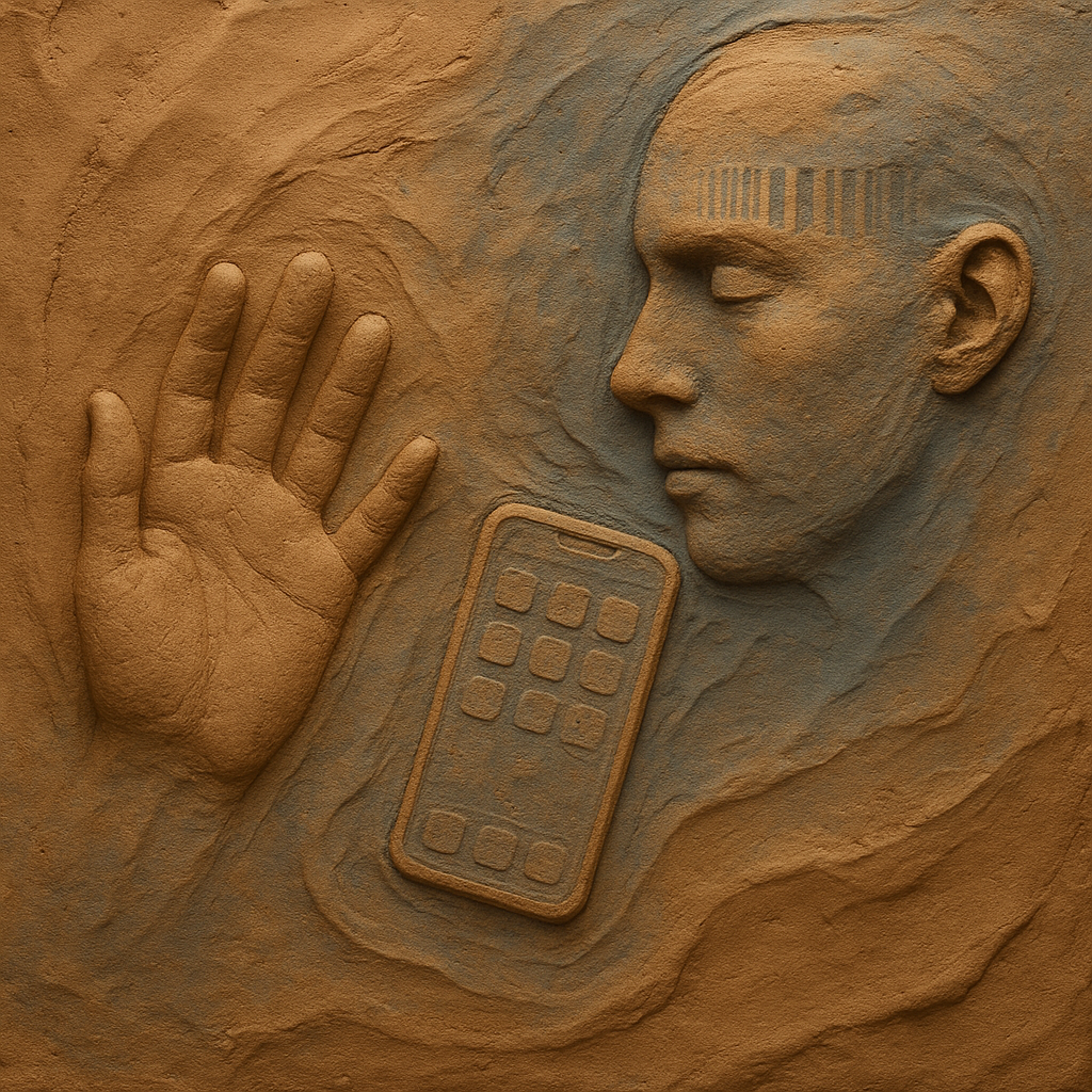 We Erased the Border Without Noticing I wanted to freeze the instant where skin, device, and thought admit they’ve been the same circuit all along. I split face, hand, and phone into suspended shards