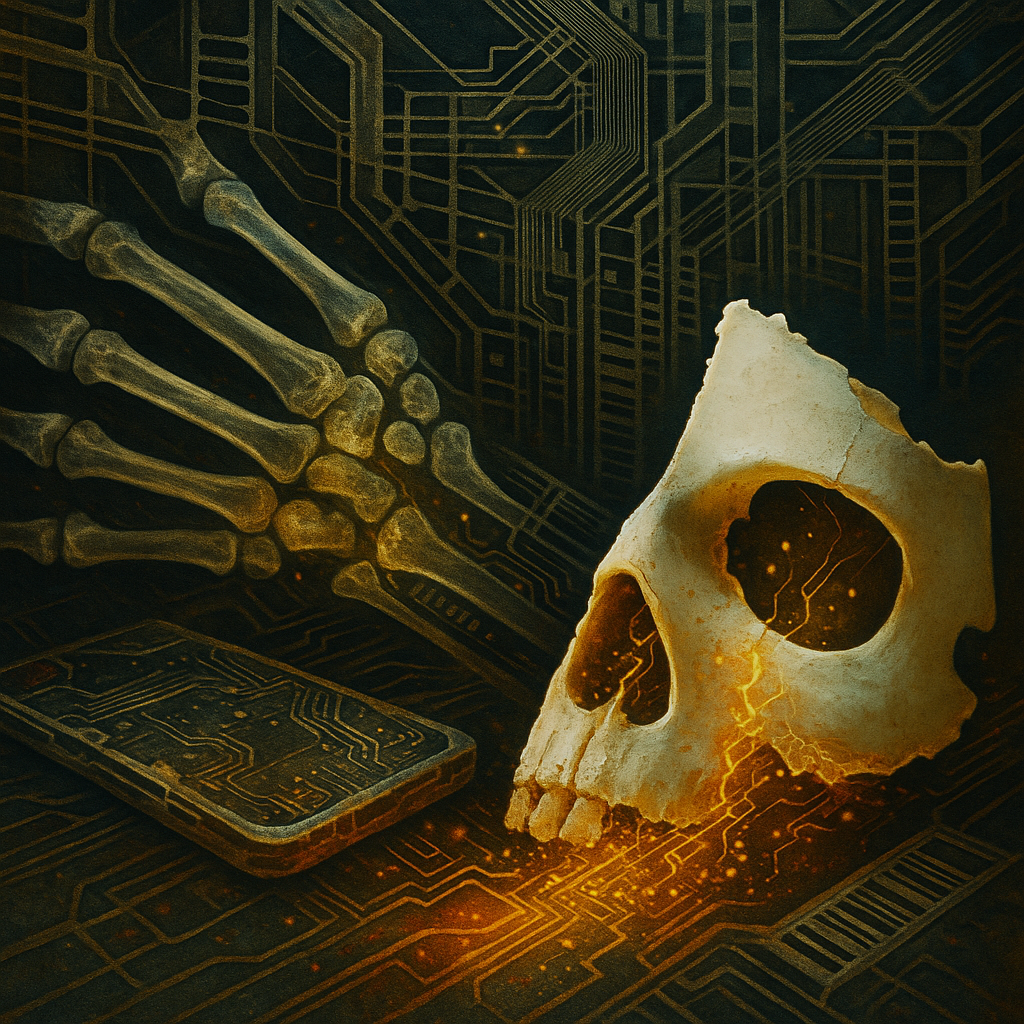 The Limb We Mistook For A Tool I wanted to show that the device, the body, and the algorithm are already one organism, split only by habit. I fractured a face, a hand, and a phone into bone‑white spac