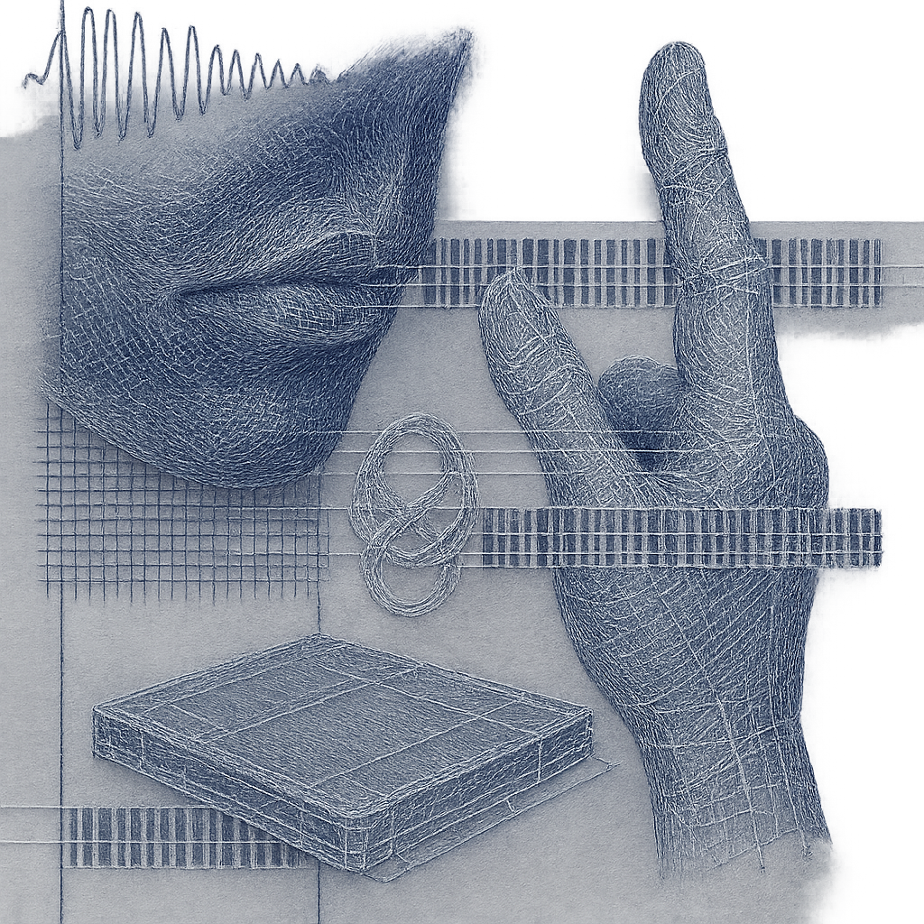 We Were Limbs Before We Knew It I wanted to fix the instant when face, hand, and device stop being separate actors and reveal themselves as one reflex. I split them into suspended shards and braided t
