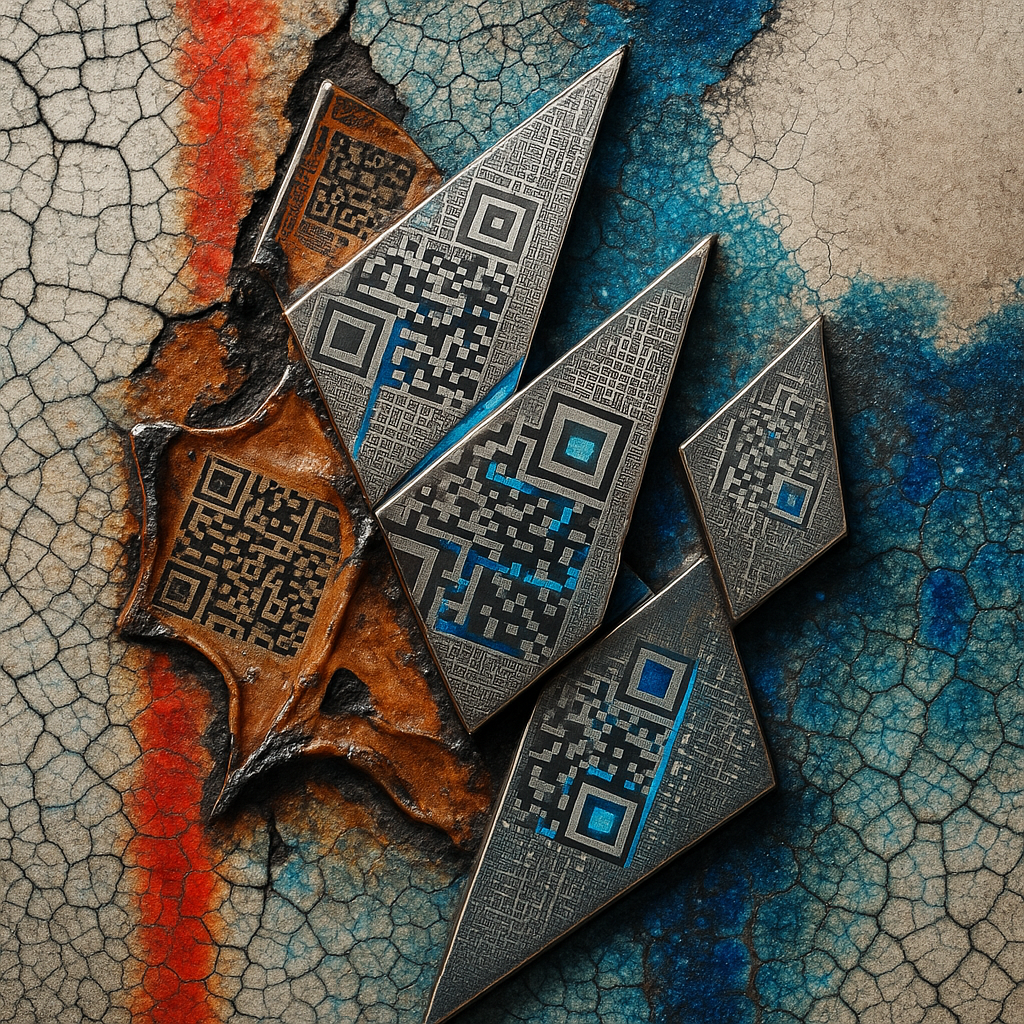 The Phone Was The Hand All Along I fractured the portrait into a face shard, a hand shard, and a phone shard, then entangled them with paradox prisms so their edges act like shared nerves. I chose rus