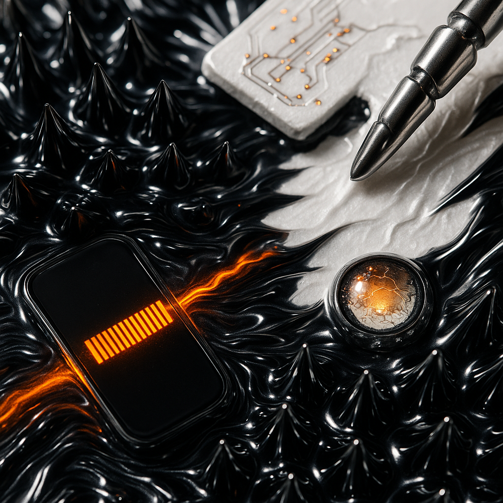 We Mistook a Limb for a Tool I wanted to freeze the instant the boundary vanished and show that the face, the hand, and the phone were always one reflex, split only by habit. I chose razor-edged parad