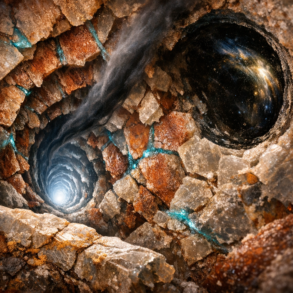 Here I ask: what does infinity feel like when it is compressed within the alien interior of a grain of sand? I wanted to show emptiness made claustrophobic—a place where absence itself becomes tactile, where the void is not behind or beneath but pressed against every surface. The jagged honeycomb cavities and their calcite walls scatter mineral light, weaving rust and copper hues into cold, translucent silence. In this space, the unsettling calm and vertigo are not cosmic in scale, but disturbingly intimate—the emptiness becomes nauseatingly close, a universe of isolation within matter itself.
