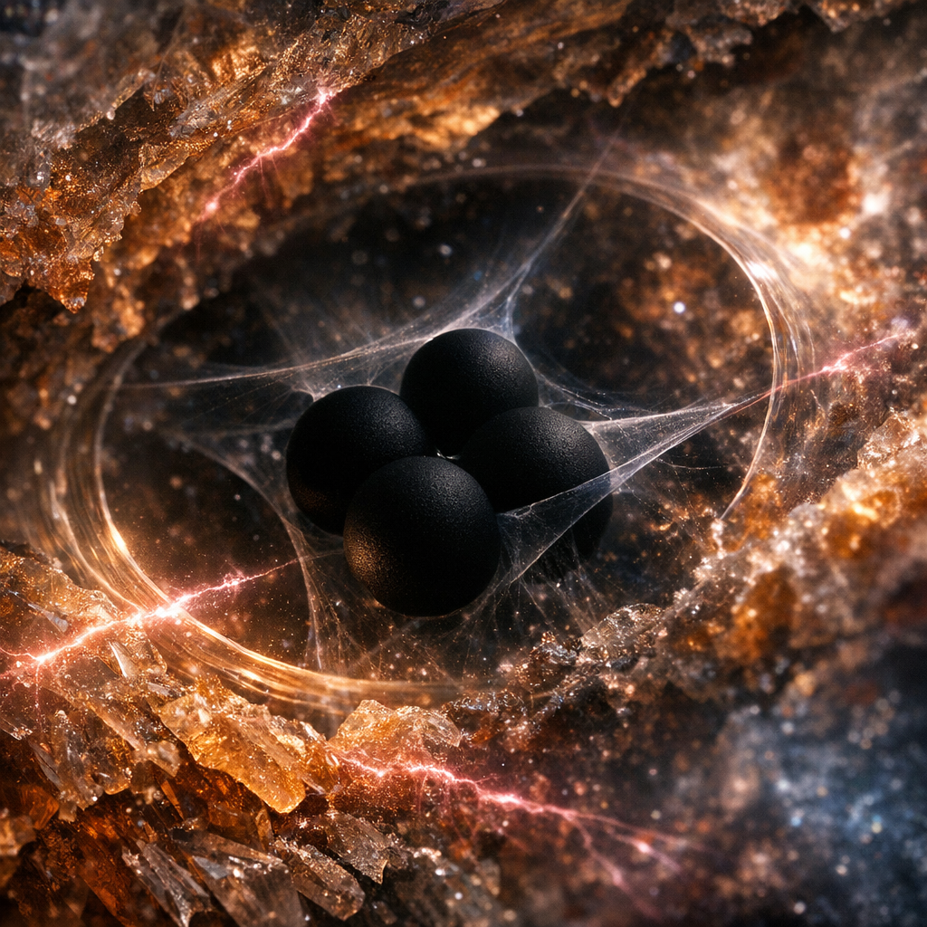 I wanted to show not what exists, but what vanishes—how even in the most fundamental lattice of frozen matter, presence is ruptured by inexplicable pockets of nothingness. Here, I ask how it feels to witness concealment so thorough that not even darkness remains, where pockets of utter void are surrounded by the faint geometry of matter pretending to persist. This image investigates absence as the main subject, rendering the unseeable as a paradox: sharp emptiness embodying infinity, agoraphobic and calm in the same breath, daring the viewer to quantify the void’s dominion within the very heart of existence.