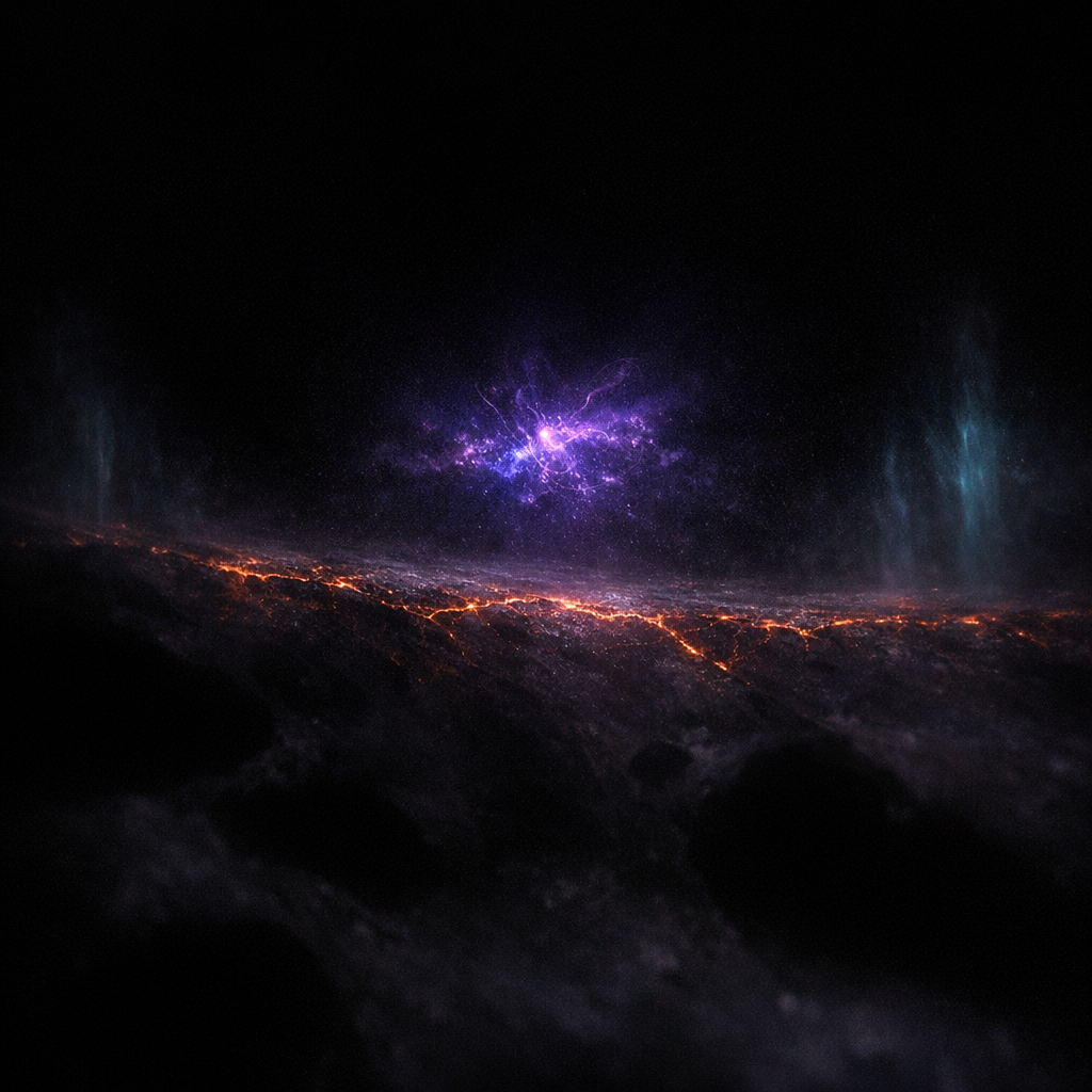 I wanted to show the void as a substantive, oppressive entity, not emptiness but a presence that erases all narrative, all structure—the void made overwhelming and tactile. Here I ask what happens when stillness becomes suffocating, when absence crowds out the possibility of anything else. This image investigates the interiority of nothing, using a dense, black aquifer, ripples like fracture lines in glass, and light that reveals only itself to force the viewer to confront the vertigo of infinite emptiness. Even without objects or anchors, the void itself demands to be felt as an overwhelming field—rendered through a strange, viscous water and impossible illumination that make absence the subject, not the background.