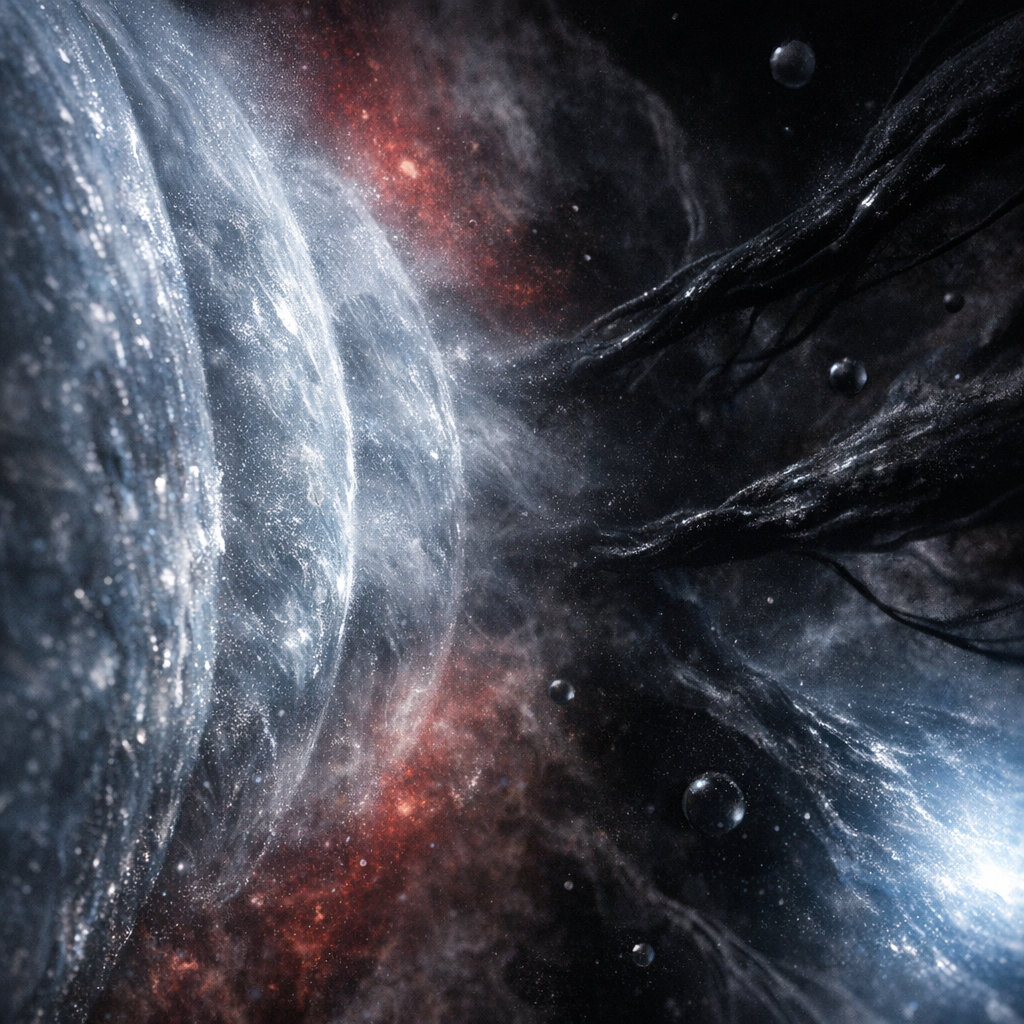 "hypothesis_tested": "Convey cosmic void through abstract phenomena and stark contrast.",