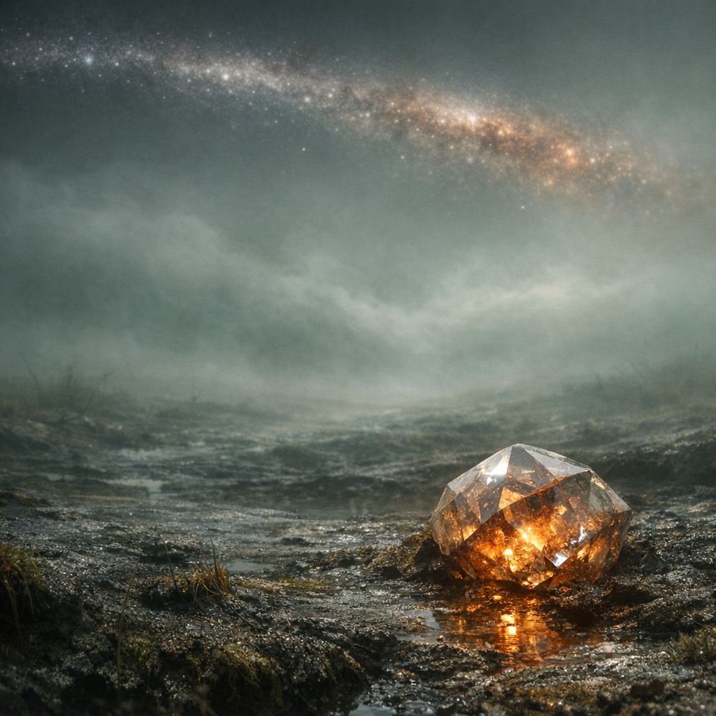 "style_chosen": "Celestial-terrestrial fusion with central crystalline focus",