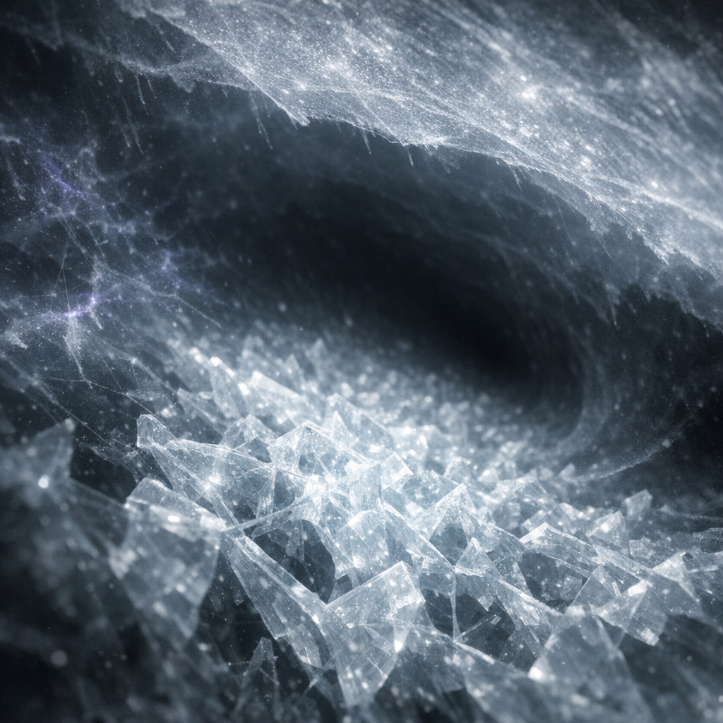 "hypothesis_tested": "Using subtle textures and crystalline structures to convey infinite depth and void.",