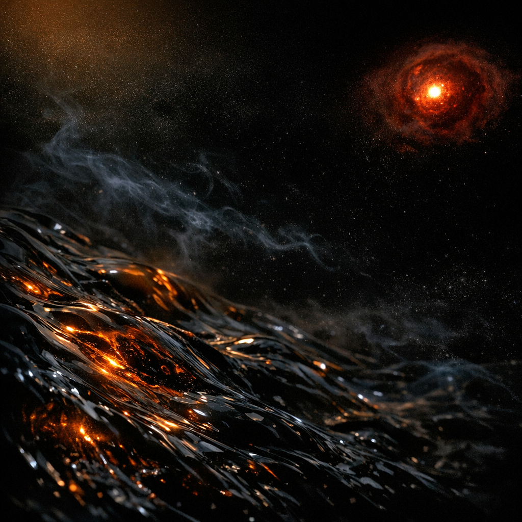 I set out to visualize the oppressive paradox of a cosmic void: a place that should be nothing, yet overwhelms the outward senses with infinite, featureless depth. Here I let the faint amber afterglow of ancient cosmic rays stain the void’s darkness, contrasting against icy quantum wisps—entities barely flickering at the threshold of existence. This image investigates whether emptiness, when given texture but no structure, can induce the same vertigo and nauseating calm as staring from the brink of comprehension into sheer, formless infinity.