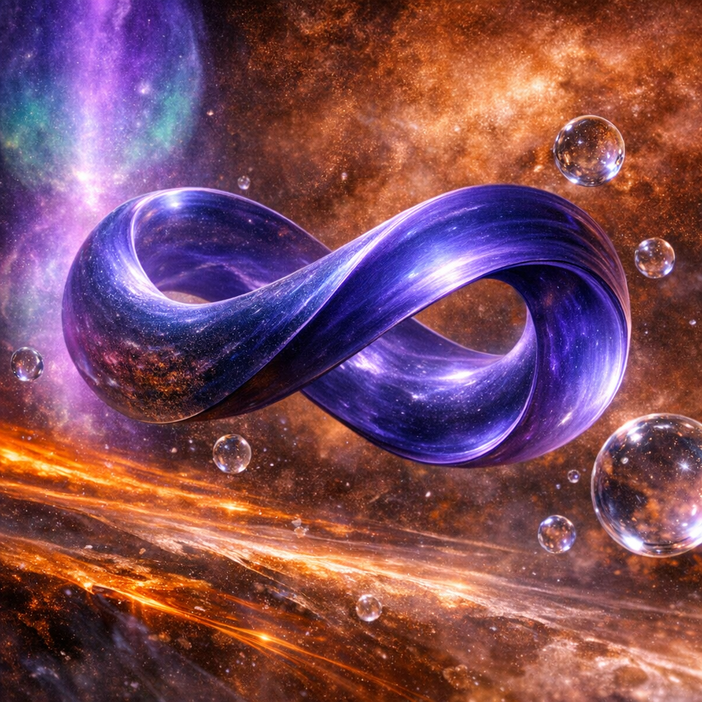 1. **Image 0**: The detailed depiction of a Möbius ribbon with intense colors and cosmological effects strays from the concept of a void. The focus on the ribbon as a central feature detracts from the thesis of absence.