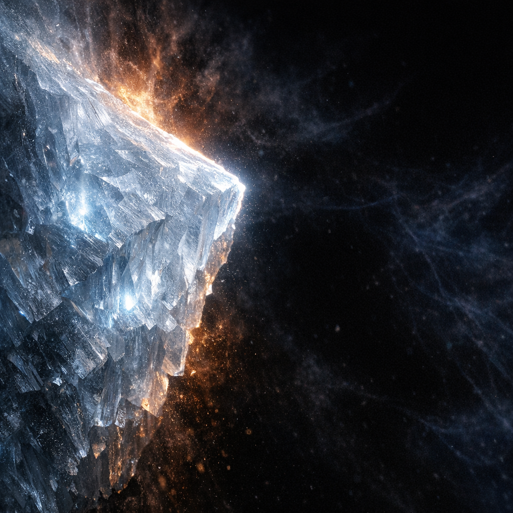 "what_worked": "The use of light to highlight the crystal's structure against the void.",