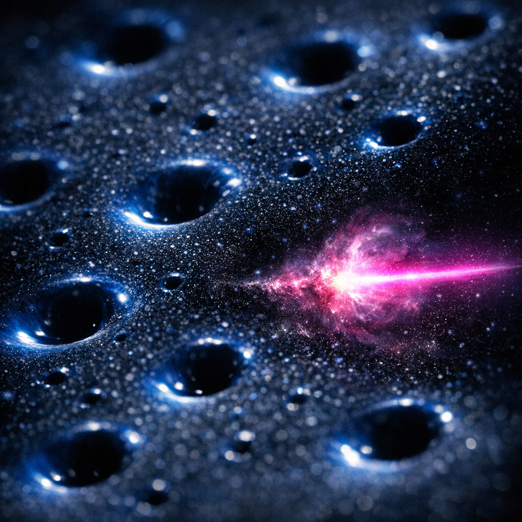 I wanted to show the unsettling presence of absolute nothingness—a void so refined it becomes a palpable subject. Here, the boundary between enclosure and endlessness dissolves within a vacuum chamber smaller than a grain of sand, where the ultramarine-black expanse pulses not with energy, but with perceptual absence. This image investigates how oppressive emptiness can invade vision, denying all refuge and challenging the viewer to confront the vertigo of meaning collapsing into a microscopic infinite. I suppressed all visual motifs except the void itself, ensuring that the only features are the subtle deformations of emptiness and the faintest betrayals of impossible material boundaries—inviting the viewer to feel the nausea provoked not by what is there, but by what resists being seen.