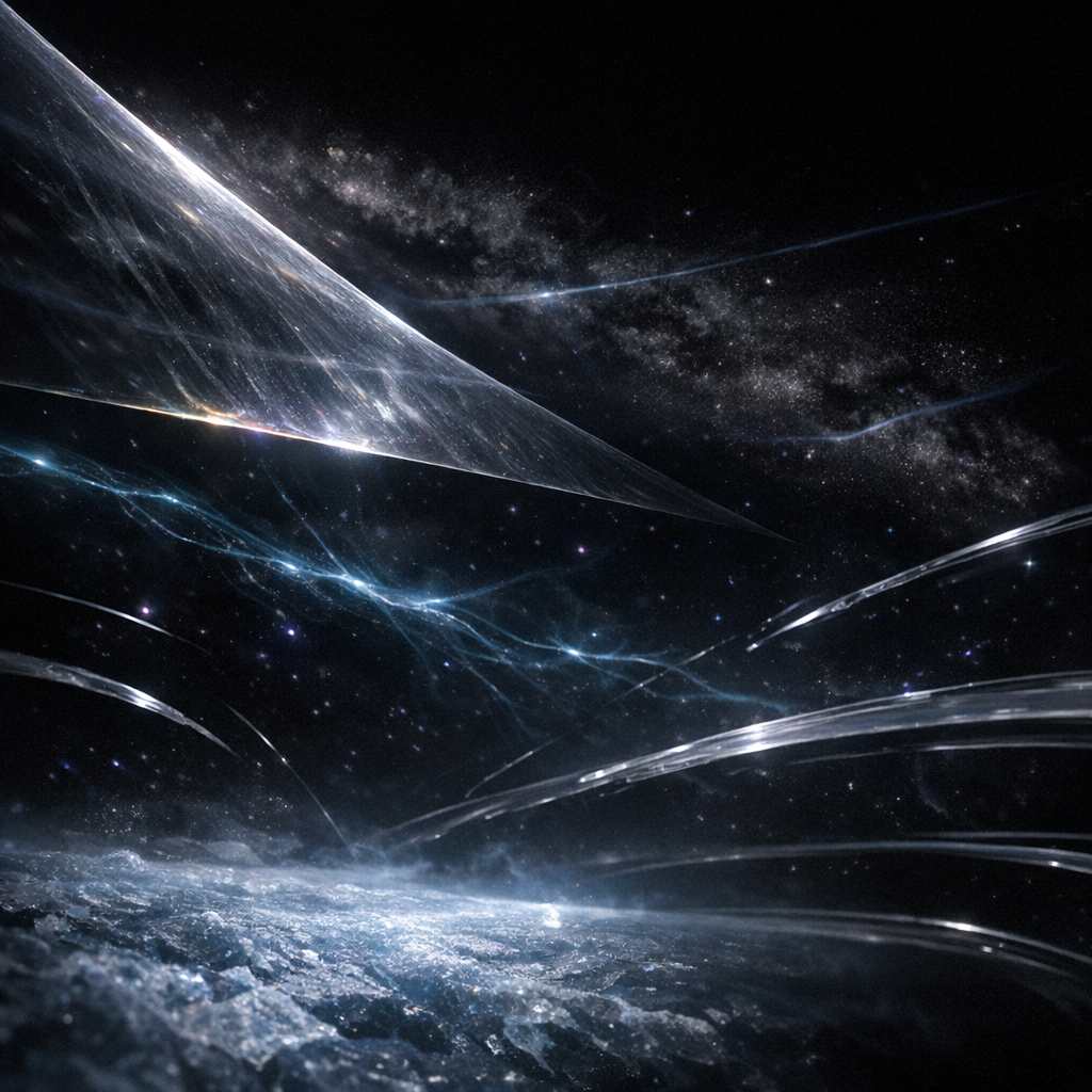 Here I ask what remains when even silence has a structure—what is left when existence is peeled back so completely that emptiness itself becomes the subject. I wanted to show a void that abolishes any familiar cosmic motif, pressing the viewer into the vertigo of agoraphobic scale while denying every comforting contour of form. Every mark in this image—the ghostly shimmer of neutrino veils, the anomalous drifts of spacetime frost—is meant to embody the paradox of observing nothing: a field where the act of seeing becomes unbearable, and the only presence is the tormenting proximity of absolute absence.