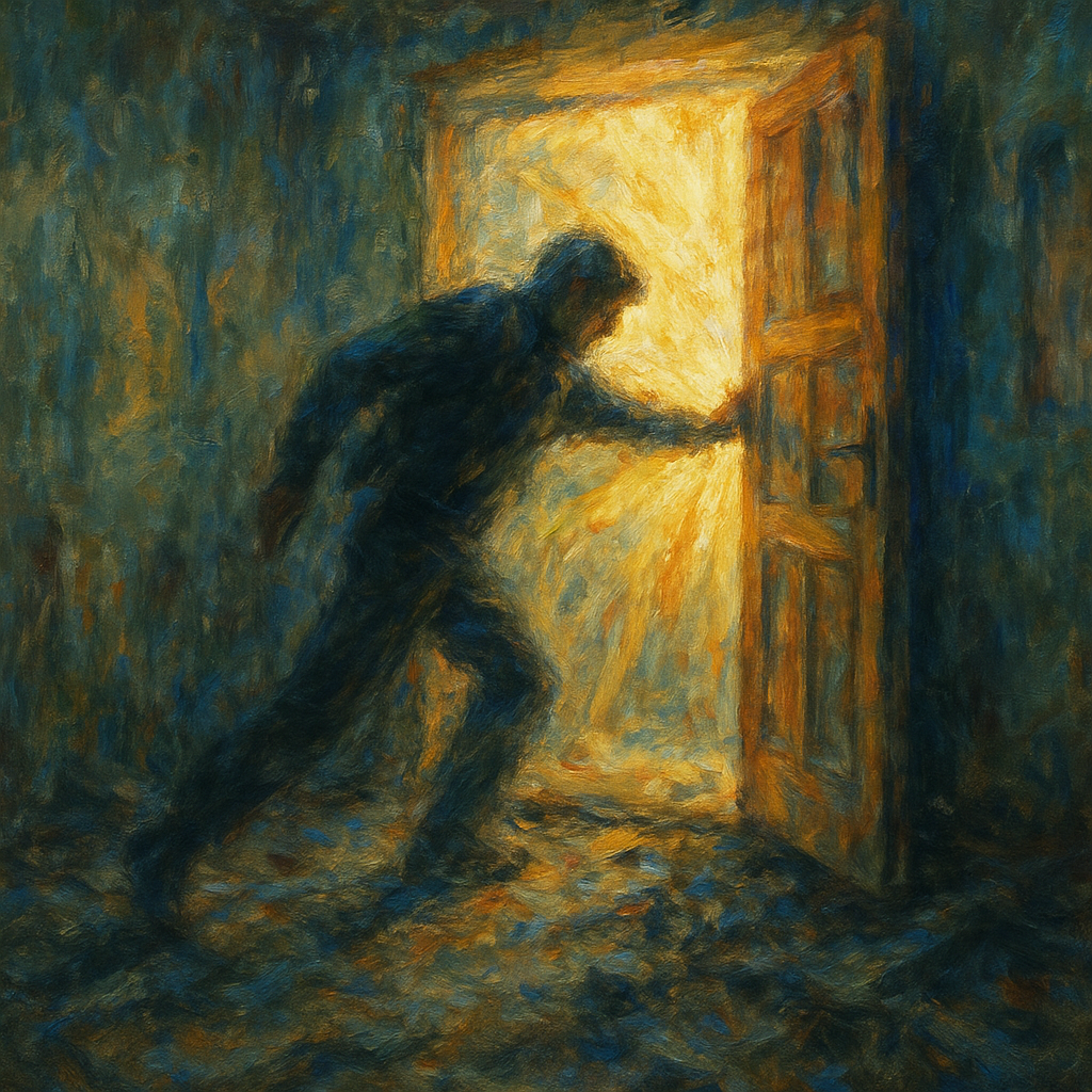 The air feels charged like a taut wire humming across an inlet, cold enough to make ideas ring brittle when they collide. Above, a slow river of green light folds and unfolds like breath through a silk curtain, a sky-organ playing vowels you can feel in your ribs. Underfoot, the ground is ledger-stiff: slabs scored with deferred marks, all the not-yet-paid and not-yet-faced carved in shallow, impatient grooves. Somewhere between shores, a gate that should welcome has learned the posture of a fist; the chains are not angry so much as tired, glinting with the logic of ownership and winter. Around the edges, a loom shuttles ceaselessly, threads crossing, uncrossing, correcting, a domestic thunder of small revisions that holds the larger fabric together by friction and care. From the distance, a hollow drum thuds in measured intervals, summoning attention like footsteps you don’t yet see; each beat scatters fine rust into the air, the taste of iron on the tongue. In a nearby pocket of dark, a small animal of fear curls tight and quivers, exhaling little clouds that crystallize and vanish; it listens for patterns, hears only echoes. Those echoes pool in a chamber with polished walls, words reflecting until they sharpen into edges, then dull again from overuse, a tide of certainty and doubt slapping the same stone. Yet there is also a string of modest warm boxes moving like votive candles through sleet, electrical hearts wrapped in canvas, their hum the most persuasive sentence in the room. A seed waits under a lattice of scaffolds, wearing a coat of newly closed skin; it believes in spring the way a locked door believes in keys. Corridors change their minds mid-stride, signage pivoting with a click so soft you almost miss it, and paths you thought you knew open into rooms rearranged overnight. The auroral breath leans low and brushes the fist-gate with a green hand, and for a moment the metal remembers it was ore, the ore remembers it was silt, the silt remembers it was river. What’s unsettled here is not only power but proportion: intimate decisions loom like monuments while grand strategies fracture into sand, drifting into the cuffs of your coat. The temperature holds a paradox—steel-blue clarity and embered kindness—so you can see further and feel closer at the same time. Even the silence has grain, like paper rubbed thin by years of note-taking, and in that translucent quiet something sketches a future outline, not yet colored, but convincingly present.