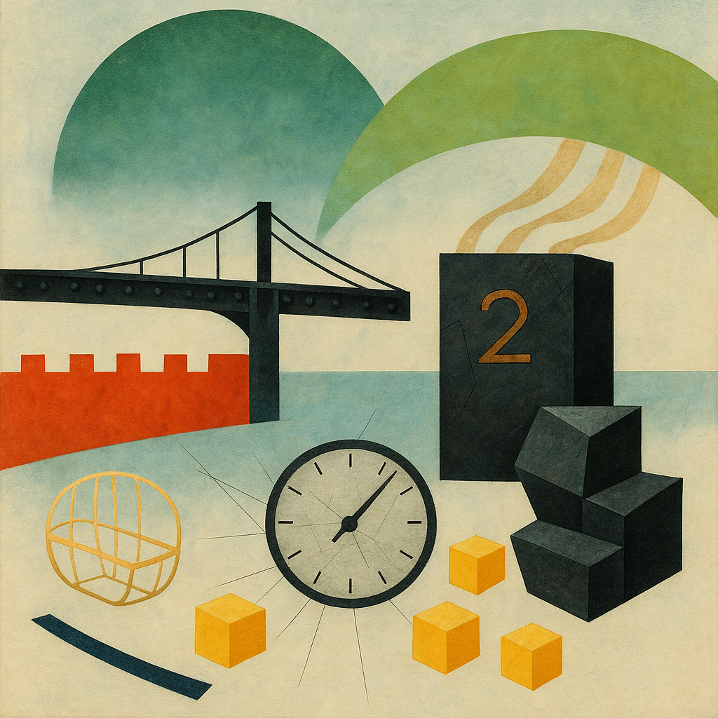 Air feels charged, like a taut wire humming under frost, with warm gusts slipping through in defiance of the season. Screens flicker with rumors and numbers, each pixel a bead of cold sweat sliding across tempered glass. Somewhere, a practiced pair of hands steadies a failing machine, while far away a green river of sky folds and unfolds like slow lightning. Concrete ambitions creak under coastal winds, and corridors of power throb with fluorescent fatigue. Coins of light sink through viscous time, their edges corroding, their reflections multiplying in anxious puddles. Distance stretches and snaps back—an elastic map where borders are negotiations, not lines. The present is a hinge: grit caught in it, yet it swings, grinding forward with a beautiful, difficult sound.